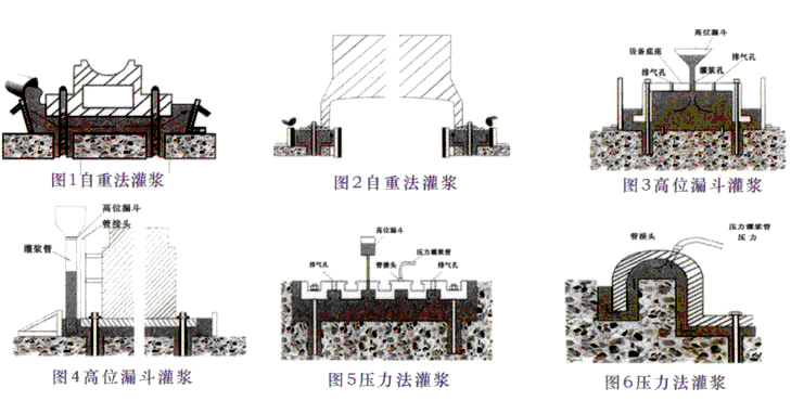 (4)设备基础二次灌浆前,应根据实际情况选择相应的灌浆方式。